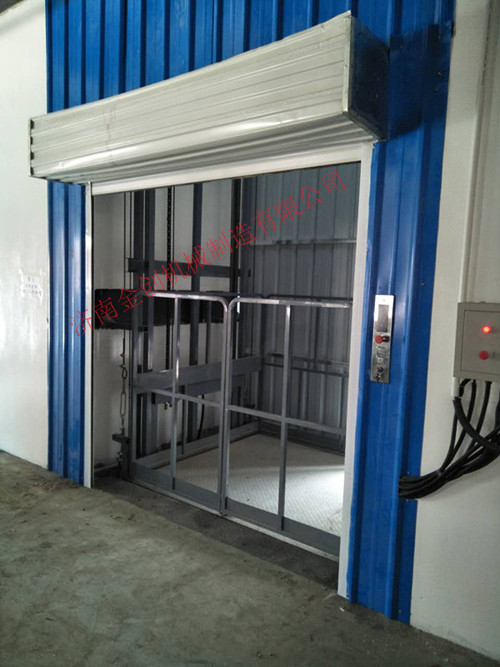 這臺在天津安裝完成的升高6米,載重3噸的鏈條導軌式液壓升降貨梯,采用電動卷簾門聯動控制,彩鋼板外封結構,結構堅固,承載量大,升降平穩(wěn),安裝維護簡單方便,是經濟實用的低樓層間替代電梯的理想貨物輸送設備.常常用于二三層工業(yè)廠房,餐廳,酒樓樓層間的貨物傳輸。鏈條式液壓升降貨梯最低高度在150-300mm,尤其適合不能開挖地坑的工作場所.