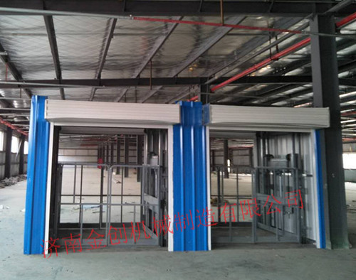 液壓升降貨梯廠家-濟南金創(chuàng)升降機械公司,生產的升高6米,載重3噸,彩鋼板外封結構導軌鏈條式液壓升降貨梯在天津安裝完成.