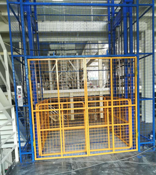 帶外防護(hù)導(dǎo)軌式液壓升降機(jī)在涂料廠安裝完成